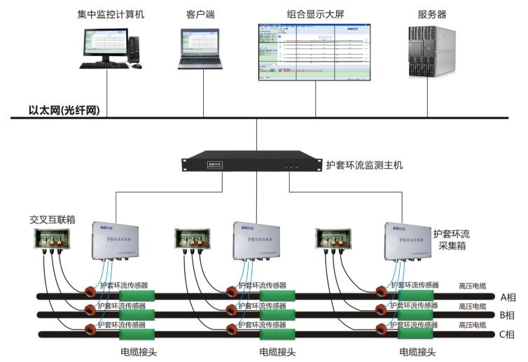 ACS210電纜護(hù)套環(huán)流監(jiān)測(cè)系統(tǒng)由護(hù)套環(huán)流傳感器、護(hù)套環(huán)流采集器等組成,適用于6.6kV及以上的輸配電力電纜護(hù)套環(huán)流在線監(jiān)測(cè),能實(shí)時(shí)監(jiān)測(cè)高壓電纜線路接地電流異常情況,還可降低電纜線路交叉互聯(lián)線、接地線、交叉互聯(lián)箱、接地箱等被盜的風(fēng)險(xiǎn)。支持遠(yuǎn)程查看功能,給維護(hù)人員手持式設(shè)備上發(fā)送實(shí)時(shí)監(jiān)測(cè)數(shù)據(jù)。很大程度上減少了電纜運(yùn)行維護(hù)人員的工作量,對(duì)電流異常的檢測(cè)點(diǎn),能夠做到實(shí)時(shí)關(guān)注,達(dá)到預(yù)防突發(fā)事故的目的。